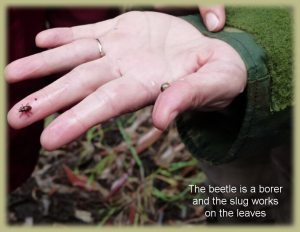 The first thing our guide shows us is two pests, both of which attack the Eucalyptus, and, Eucalyptus is NOT native. Neither are the pests. (Remember, we are NOT in the Preserve yet!).