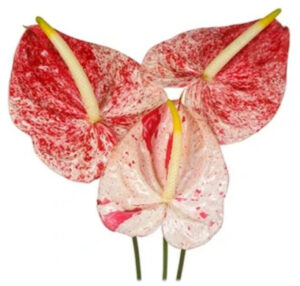 The first patented anthurium, the red speckled Starlight, was released in 1988. Developed by Calvin Hayashi, it produces red flowers that are mottled with white specks.