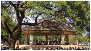 Royal Hawaiian Band, King Kalākaua, Queen Lili’uokalani, Johnny Alameida, Sol Ho’opi’i | © Public Domai,. Royal Hawaiian Band at Kapiolani Park Gazebo | © CC BY 2.0 Daniel Ramirez/Wiki